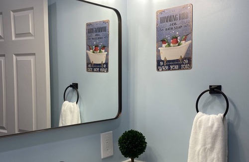 Beautiful self check in luxury suite. Covid Cleaning Guidelines Followed. Room Includes One Queen Luxury Memory Foam Beds. And a memory foam futon Room can Sleep up to 3 People.Desk and Chair for workspace. WIFI. Smart TV. Coffee Pot and Refrigerator with freezer. Wardrobe for Clothes. Luxury Bathroom with Ariel Whirlpool Spa Tub and Full Stand up shower. All rooms have Reverse osmosis water running thru all sinks and showers and tubs