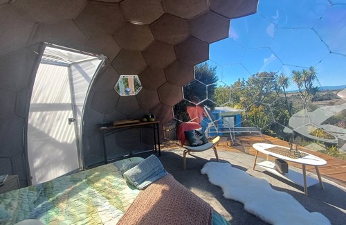This unique dome offers amazing views overlooking a beautiful lagoon. At night watch the stars from the comfort of a beautiful queen size bed. Off grid separate kitchen and bathroom. Hot tub available. No wifi as yet