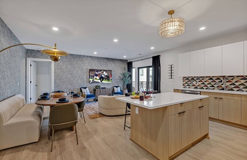 Introducing The Cosmo, a trendy and designer 4-bedroom, 3-bathroom suite situated in the heart of Nashville within the recently constructed upscale building, Hyve! Ideally positioned just a short walk away from Broadway, you'll find yourself immersed in the center of all the excitement. Embark on a leisurely stroll to discover some of the city's finest live music venues, where you can bask in the soulful tunes that define Nashville as the capital of Music City! Delight in delectable Southern cuisine at nearby restaurants or explore the diverse array of shops and boutiques in the vicinity. With this splendid home away from home, you have the opportunity to relish it all.