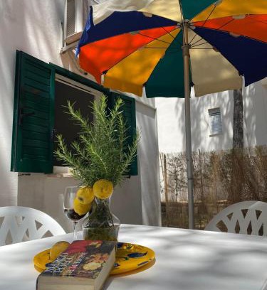 BathroomToilet, Private bathroom, Towels/Sheets (extra fee), Bathtub or shower, Bidet, Shower, TowelsMedia & TechnologyFlat-screen TV, TVGeneralFire extinguisher, Tile/Marble floor, Key access, Heating, Private entrance, Trash cans, Air conditioningKitchenKitchenette, Oven, Dining table, Refrigerator, Coffee machine, Kitchen, Stovetop, KitchenwareOutdoorsOutdoor dining area, Outdoor furniture, Balcony, TerraceLiving AreaSofa, Dining areaBedroomLinens, Wardrobe or closet, Childrens' cribsViewInner courtyard view, Garden view, Quiet street viewAccessibilityEntire unit located on ground floorBuilding CharacteristicsSemi-detachedRoom AmenitiesClothes rack, Drying rack for clothing, Fold-up bed, Sofa bed |