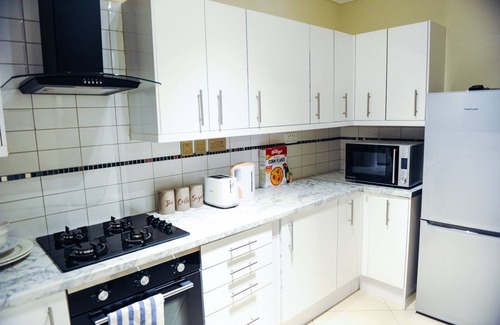 Our two apartments feature 2 bedrooms with 1 in-suite for total privacy, 2 bathrooms, fitted with UK standard kitchen, fitted with a gas cooker, micro oven, crockery, utensils, a fridge-freezer, dinning space and living room with 1st class furniture, 2 balconies, a flat screen TV with DSTV and Wi-Fi.