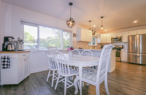 We take pride in presenting our exclusive seasonal gardens, with an array of flowers, fruits, vegetables, and herbs, all for your enjoyment and to enhance your farm-to-table dining experience. Please note that the gardens are seasonal and depending on season and weather may not look as beautiful as they do in the photos. Atascadero, a charming and intimate bedroom community, offers a respite from the hustle of urban life, blending the allure of historical charm with modern attractions. For those eager to explore, a wealth of outdoor pursuits awaits, including pristine beaches, trails, cycling, tennis, and golf. The locale is enriched with a vibrant selection of breweries, cideries, wine tastings, cinemas, and dining options. Conveniently situated in the Central Coast, we’re just 10 minutes from the Paso Robles Wine Country, 15 minutes from Morro Bay Beach, and 15 minutes north of San Luis Obispo. Our home is a sanctuary of wellness, strictly prohibiting smoking and parties, and adhering to a no-pet policy due to the owner’s severe allergies and asthma. For guests with pets, alternative accommodations are recommended. A reminder: our dedicated gardeners attend to the gardens every Thursday to ensure their pristine condition for your pleasure. The sleeping arrangements include: 1 king bed, 3 queen beds, 2 twin beds, 1 sofa bed suitable for two small adults, 2 rollaway beds, a crib, and a pack 'n play.