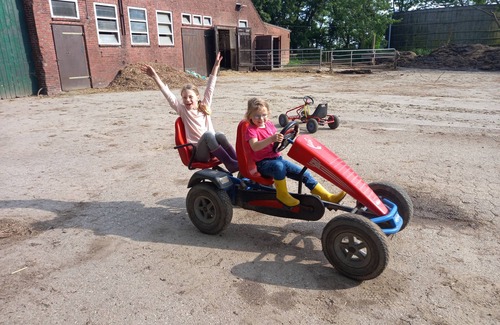 Our farm animals are guinea pigs, cats, dogs, goats, horses and cows, which want to be petted too. Children can sometimes ride on the tractor and a picture of our daily work can make.
