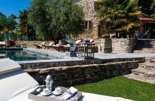 The cosy rectangular pool is set within the planted garden, ensuring absolute privacy, and is reached from the house down a few steps. The pool is rectangular with a stone edge and entry into the water is via a convenient staircase. It measures 11 x 5 m with a depth of 1.20 m. Equipped with a hydromassage waterfall and counter-current swimming. The pool is sanitized with active oxygen. Through solar panels, you benefit from a slight heating of the water.The sunbathing area is provided with sunbeds while guests can relax and play in the manicured garden surrounding it. The swimming pool will be available from the first week of May to the last week of September.