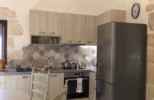 Villa Iliopetra is located in the Megala Chorafia of Chania, in the Kafe district, 12 km away from the city. From the port of Souda it is only 3 km away, while the airport "Ioannis Daskalogiannis" is 21 km away. The tranquility, the countryside with the olive trees, the sunny location and the view of Lefka Ori compose a unique environment. The traditional aesthetics of stone meet a montage of elements, so that it is formed in a restored house that serves all tastes, maintaining the traditional element. These are 2 bedrooms, one has a double bed and the other two single beds that can be joined together. There are two bathrooms with showers, one of which is inside the room, while the other has a washing machine. The open plan area includes a modern, fully equipped kitchen with a circular rotonda in the middle, where you can enjoy your food and a comfortable living room with air conditioning. There are two TVs, one of which is located inside the bedroom. The spacious outdoor area has a built-in grill and table, where you can relax and enjoy the view and tranquility offered to you. The property offers free Wi-Fi and free private parking.