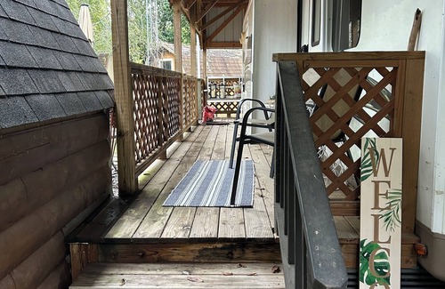 Your cozy, creek-side glamping retreat in the Flint Ridge Resort can sleep four. Flint Creek is a tributary to the popular Illinois River. Step inside this tiny home and feel right at home with all of the amenities including a keurig, corn hole, full bathroom with dual vanities, charcoal grill, and washer/dryer. Relax and unwind in the river (chairs in storage) or on the front porch. Resort amenities including river access, hiking, full golf course, miniature golf, tennis, pickleball, and more. When in season, there is a saltwater pool and float trip access. We look forward to hosting you at our place. You won’t find river access at this price!