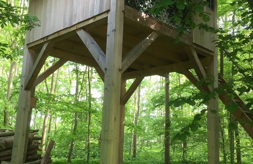 There is a tree house hidden on the property at the forest edge – a cabin 3.5m high, without water and electricity, but the quacking of frogs at nights and chirping of birds in the mornings are heard very nearby. 2 mattresses are available; bring your own sleeping bags. You can rent the tree house only together with the apartment (per night 20 €).