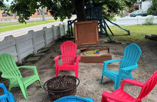 Enjoy our family's home located in historic Harbour Town for your family's summer getaway. This cozy home offers plenty of space for a large family vacation. New bedding throughout will offer a good nights sleep after your busy summer days. A walk to the beach, fishing on a Lake Erie charter boat, a trip to Cedar Point, or visit to Paper Moon Winery are all close by options to the home to plan your vacation day. Relax with your coffee by the fireplace or outside under the pergola in the private fenced in backyard as you plan your day or tell stories from the day before. Take a 10 minute walk to downtown Vermilion to enjoy the many restaurants and live music during the summer "Third Thursday" events to experience a small town summer atmosphere at its finest. Use the fully equipped spacious kitchen and dining room table to cook large family meals or use the grill and eat al fresco. Bikes are included and available for Mom, Dad, and four kids for rides to the candy shop or bakery. This is a great home and in a great spot. We hope your family enjoys this home as much as we do. You're sure to create fun family memories as you live "In Between Dreams"!
