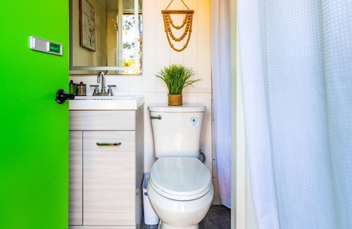Nestled in the forest, the stand-alone shower haus offers modern amenities for rinsing off a day of exploring. This is shared with all guests at the property. Included in your stay is a set of plush towels to enhance the sense of calm and relaxation. All shower amenities are provided during your stay. We hope that you relax and recharge. For those feeling a bit more adventurous, be sure to check out the outdoor shower. Look up to blue skies and Ponderosa pines.