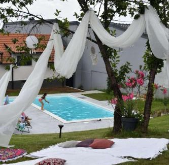 Providing a garden, Infinity features accommodations in Novi Sad. This property offers access to a terrace, darts, free private parking, and free Wifi. The villa provides an outdoor swimming pool and full-day security. The air-conditioned villa consists of 3 bedrooms, 2 living rooms, a fully equipped kitchen with a dishwasher and a coffee machine, and 2 bathrooms with a walk-in shower and a hair dryer. A private entrance leads guests into the villa, where they can enjoy some fruit and chocolates or cookies. This villa is non-smoking and soundproof. The villa has a picnic area where you can spend the day outdoors. SPENS Sports Center is 2.7 miles from the villa, while Promenada Shopping Mall is 3.4 miles away. Belgrade Nikola Tesla Airport is 52 miles from the property.
