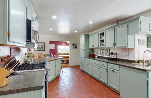 Upon entry, you'll be met with a bright interior and a cozy atmosphere throughout the well-appointed living area. Relax and make yourself at home by resting on the plush furniture and streaming a movie marathon on the large TV. Prepare grand meals and touring snacks in the full kitchen, equipped with ample cupboard room, stainless steel appliances, a breakfast bar, and a formal dining table. Comfortable beds in spacious bedrooms ensure everyone receives a wonderful night's rest from the day's adventures. Perfect for family reunions or group retreats, there's more than enough room for everyone in this humble abode and wide open space. A dedicated workspace with a desk and chair is available for remote work.