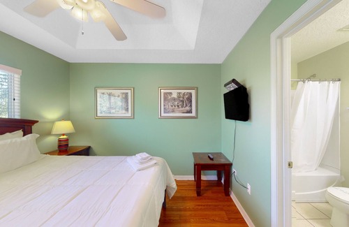 Inviting dog-friendly townhome with full kitchen, central AC, & W/D is located in Crestwynd Bay. Inviting dog-friendly townhome with full kitchen, central AC, & W/D provides accommodation, featuring Pool, Hot Tub, Balcony/Terrace, among other amenities. This House features Pool, Hot Tub, Balcony/Terrace, to make your stay a comfortable one.