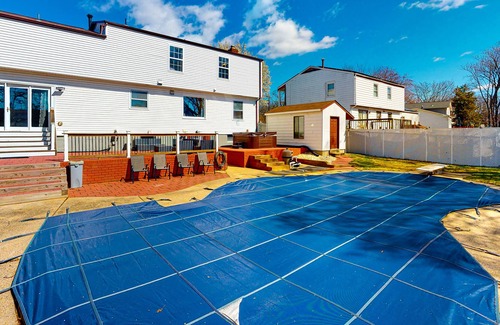 A comfortable and tranquil getaway awaits you and your loved ones in this cozy Maryland property. A glittering pool and hot tub in a large backyard is the perfect summertime activity for a reunion or for lots of kids running around! Conveniently located close to delightful attractions, this area is highly sought-after for its favorable distance from things to do. Oxen Cove Park, Capital Wheel, Iverson Mall, Topgolf, and Tasting Room Wine Bar & Shop are all within a 20-mile radius.