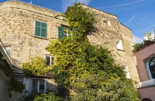 Ischia: Beautiful, historical apartment house "Lo Scuopolo", 3 storeys, from the IXth century. 4 apartments in the property. In the district Ischia Ponte, in a busy, sunny position, in the heart of the city, 5 m from the sea, 50 m from the beach, in a pedestrian area. Room cleaning on request (extra). Airport transfer (extra). Public parking 200 m on the road extra. Shop 20 m, grocery 100 m, restaurant 50 m, 5 minute walk to the centre, bus stop, ferry "Ischia" 2 km, sandy beach, diving center 200 m, thermal baths "Castiglione" 5 km. Sports harbour 200 m, marina 300 m. Nearby attractions: Castello Aragonese 100 m, Forio 5 km, Napoli, Penisola Sorrentina, Costiera Amalfitana, Capri. Please note: car not advisable, no lift. Private mooring (extra) on request. The outside of the house is left untouched because under conservation act and it cannot be renovated.