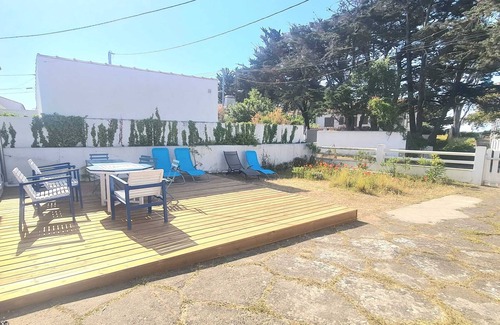 Located 100 m from the beach of La Guérinière, and 5 minutes walk from the city center. It is a 120m2 house with 1 back garden of 100 m2, and a terrace / garden in front of 100m2. Bicycle shed.