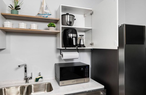 * The kitchen features high-end appliances and ample counter space, making cooking a joy.