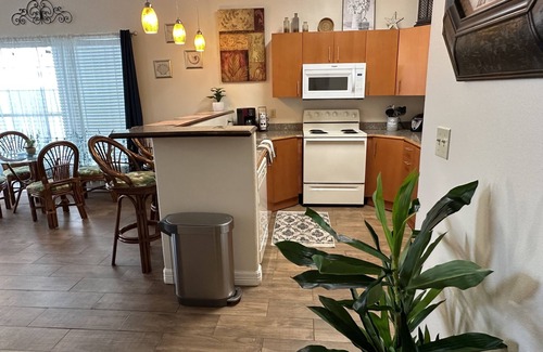 Our condo is island themed & steps to the beach, less than 1 minute. The pool is right outside your bedroom & can be accessed through a private gate. Includes everything you need for your get-away to paradise: a fully stocked kitchen, beach chairs & towels, starter packs for hygiene & laundry, even toddler beds & toys. Ground-floor unit, 2 parking spots, built-in BBQ by the pool. There's no better location or convenience! Walk to Daddy's & Gravity Park. Sleeps 6 adults comfortably & can fit 8.