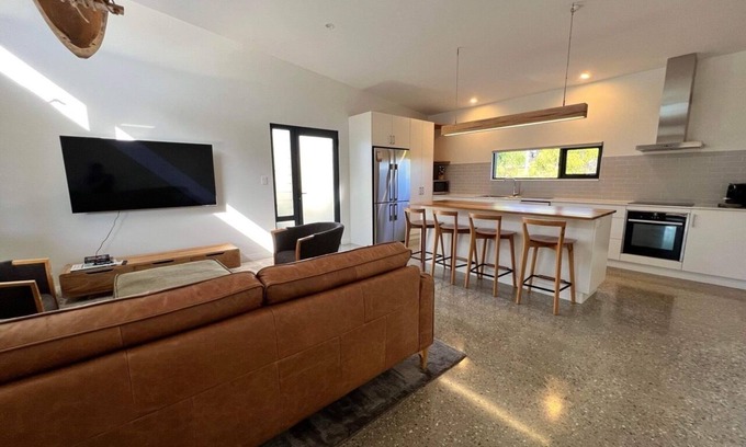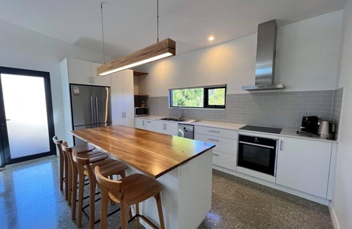 The well stocked kitchen has ample work-space for creating a feast and merges seamlessly with the open plan living. Featuring a large fridge/ freezer, 600mm oven with electric cooktop, microwave, Nespresso coffee machine and much more. Wifi is included with your stay.