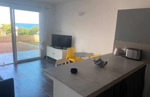 Pretty ground floor with sea view of 35m2, air-conditioned in the living room, a living room with a small sea view and a fully equipped American kitchen (washing machine - oven - microwave - nexpresso coffee maker...