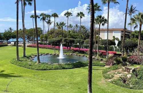 Discover paradise in this stunning condo at Kamaole Sands, Building 10, with some of the best ocean, fountain, and garden views in the complex. Relax on the spacious private lanai with a tropical ceiling fan, perfect for savoring Maui's breathtaking sunsets.