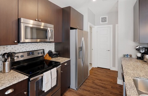 Located next-door to the Dr Pepper Ballpark, this property is truly in the heart of Frisco. This area is perfect for all visitors with its sports attractions like the Dallas Cowboys, shopping at Stonebriar Centre, diverse dining options, entertainment venues, family-friendly attractions, and its proximity to other Dallas-Fort Worth destinations. Our tech-enabled apartments offer self check-in at 4pm, 24/7 guest support by text, phone, or chat, and a Virtual Front Desk accessed via mobile device.