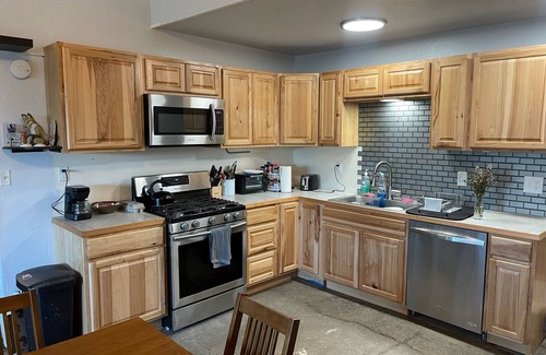 - Coffee Maker, cooking utensils, pots, pans, for basic cooking needs