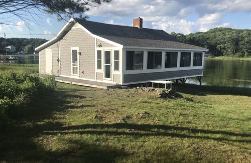 Private waterfront cottage with ocean, island and lighthouse views on quiet tidal cove. Located in Cape Porpoise, a small fishing village which is part of Kennebunkport. Fully equipped eat-in kitchen, screened-in porch, both overlooking the cove. Large living room with two twin built-in daybeds and fireplace, cozy master bedroom and bath.