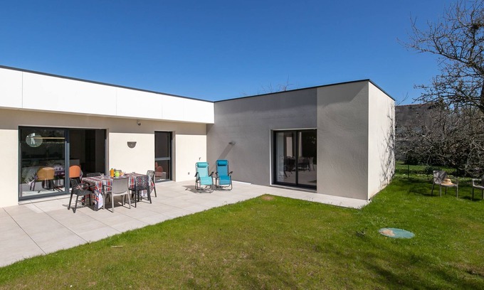 Beautiful single-family house "Keryanne", built in 2024. In the district of Kerfram 500 m from the centre of Plomelin, 11 km from the sea, 11 km from the beach, in a cul-de-sac. Private: property 630 m2 (fenced), garden wildlife garden and trees. In the house: storage room for bicycles. Parking (for 2 cars) on the premises. Grocery 500 m, supermarket 800 m, restaurant 500 m, bus stop 200 m, sandy beach "Plage de Kermor" 11 km, indoor swimming pool 12 km. Sports harbour 11 km, golf course (9 hole) 5 km, sailing school 11 km, riding stable 3 km. Nearby attractions: Quimper, Bénodet, Pont l'Abbé 12 km, Ste Marine 10 km, Le Guilvinec, Penmarc'h 24 km, Concarneau 35 km, Douarnenez 27 km. Hiking paths: GR 34, Rivière Odet.