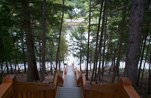 Our beautiful log home, known as Kineo Escape, is nestled on a wooded lot at the mouth of the Moose River in Rockwood, Maine which is situated in the heart of Maine's legendary Northwoods and the magnificent Moosehead Lake region. As the cabin name infers the views of Mount Kineo from the private float are spectacular. The rustic look of exposed beams and a field stone fireplace are complemented by the cabins modern amenities. Kineo Escape Cabin is equipped with a full kitchen, two full bathrooms, four bedrooms, a family room, a heated gear room, and a large covered porch! For snowmobilers, it’s located within a stone's throw of the famous Moosehead Trail and Route 66, and within minutes of the ITS snowmobile trails! The cabin fits 8 people comfort,.