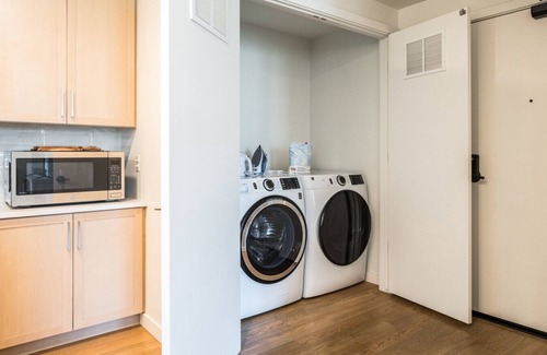 This one-bedroom retreat features a plush king bed and a queen air mattress to comfortably accommodate up to four guests. Enjoy a fully stocked kitchen with a coffee bar, in-unit laundry, and a smart TV for your favorite streaming services.