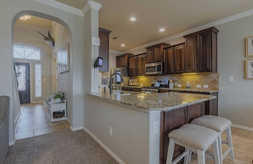 The whole group will enjoy easy access to everything from this centrally located home close to Momentum Bank Ballpark! Well maintained, on corner lot. Privacy without sharing fence to back neighbors! This 2-story open concept floor plan makes entertaining a breeze! Home theatre, flex/ game room and 3 bedrooms upstairs. Primary downstairs with large bath double sinks, separate shower, tub. Ping pong table and multiple neighborhood playground areas. Blow up mattress available for extra sleeping for the team!