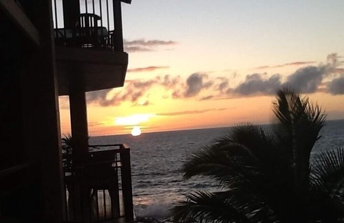 Stunning ocean views from the lanai, ocean front from the bedroom, the sounds of the surf on the rocks, and the spirit of Aloha welcomes you to our home in Hawaii. Kona Makai is a beautiful oceanfront complex with well maintained gardens, swimming pool, hot tub, gas barbecues, two tennis courts, covered parking, and access to snorkeling and scuba diving. The condo includes a full kitchen, washer and dryer, TV and air-conditioning. The town of Kailua (shopping, restaurants) is a short walk, as are beaches and the Ali'i Garden Marketplace.