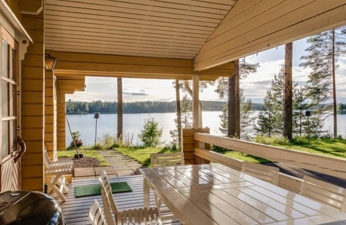 Well-equipped villa on rocky peninsula next to the Konnus channel. The another same size cottage 10211 Unnukkamaja on the peninsula.