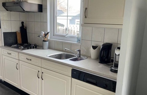 The chalet is suitable for 5 people and 1 pet and is completely fenced by a hedge. It is beachy furnished and has a nice outdoor area with lots of privacy.