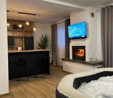 Kuća za odmor Gornja Tresnjevica is a recently renovated villa in Vrlaja where guests can make the most of its outdoor swimming pool, private beach area, and garden. This beachfront property offers access to a balcony, free private parking, and free Wifi. The villa has an outdoor fireplace and a hot tub. Offering a terrace and mountain views, the villa includes 3 bedrooms, 2 living rooms, cable flat-screen TV, an equipped kitchen, and 2 bathrooms with an a bath or shower. The comfortable, air-conditioned accommodation also comes with soundproofing and a fireplace. The property has an outdoor dining area. During warmer months, you can make use of the barbecue facilities and eat on the private patio. Rudnik Thermal Spa is 11 miles from the villa, while Izvor Aqua Park is 9.3 miles away. Morava Airport is 41 miles from the property.