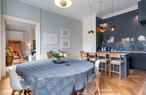 The apartment is in the heart of the most chic neighborhood of Lyon, in the heart of the historic and overlooking the river. Spacious and bright, the “Sable” is a French chic apartment twisted with modernity. Blurring the tracks, he mixes classic, contemporary decor and colors. A variation of blue dresses and structures the rooms giving it character, personality and warmth. the ideal starting point to discover the secrets of Lyon.