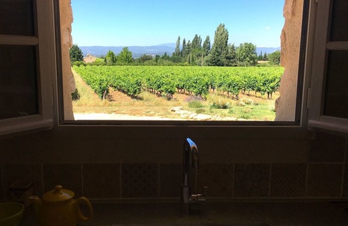 The Ecurie is located in Bonnieux, one of the most beautiful and authentic village in the Luberon. Between vineyards and cherry trees, only 10 minutes walk from the village, it is part of an old farmhouse dating from 1718, while being completely independent. It is 35 m2 and includes a living room with a sofa, a fitted kitchen, a bedroom area with a double bed (160 X 200) and a shower room with wc, and a terrace. Restored with beautiful materials, all associated with harmonious colors and restful, it is completely redone. No nuisance, with beautiful views of the vineyards, Mont Ventoux, and the villages of Lacoste, Roussillon, Gordes and on the other side of a small garden (not accessible). L'Ecurie is ideal for relaxing in the sun and discovering Provence.