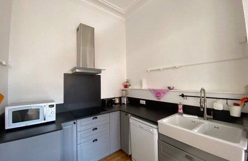 - A fully-equipped kitchen with hob, fridge, cooking utensils, microwave, dishwasher... The coffee machine is a Nespresso.