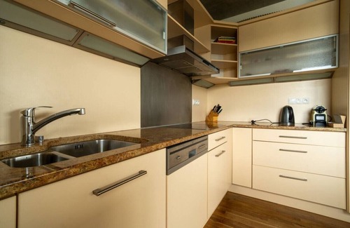 Stay in a stylish two-level apartment in the modern "Locelot" residence in Vysočany. This 4-room flat features full A/C, fast Wi-Fi, a modern kitchen, and garage parking. Ideal for families or business stays. Quiet, spacious, and well-connected to the city center.