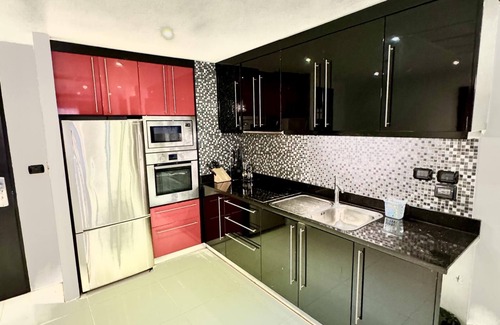 "The Entertainment Center of the Universe"), Only steps away from the famous Patong Beach, Restaurants, Jungceylon Shopping Center, Bars and Entertainment. The 68sqm unit is equipped with separate living room, King Size Bed, Large Screen TV, Sofa bed, Kitchen, cooking utensils, Microwave Oven, Dining Table, Bathroom and Best of All your own Private Jacuzzi.