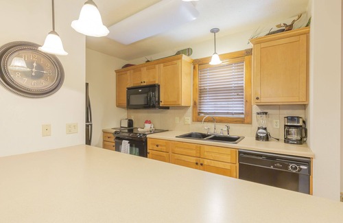 This is one of the most popular cabins in the resort. It sports a fabulous view of Fox Hollow Lake and is across the street from the pool, playground, sand volleyball court, gated/paved basketball, and badminton court. Inside you will find two modern and fully outfitted kitchens, two dining rooms, and two living rooms plus two sets of laundry washer and dryer. The whole building offers three King bedrooms, a loft with a bunk bed and two queen sleeper sofas (one in each of the living rooms.) Each bedroom has an associated master bath with an oversized Jacuzzi tub and walk-in shower. In this home, you have plenty of room for a large family or group with the one-bedroom side able to be locked off from the 2-bedroom with loft side for even more privacy.