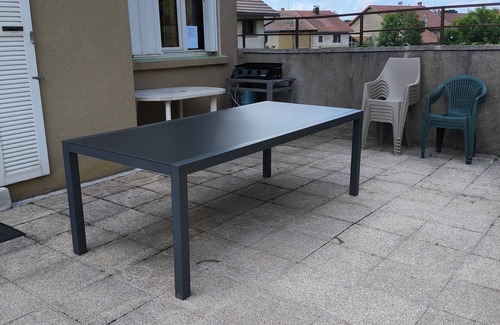 - terrace with barbecue, garden table and chair, deckchair
