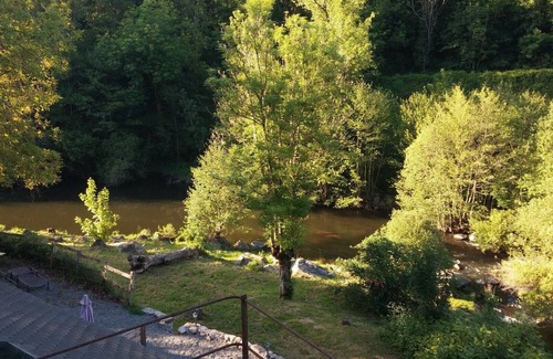 You have a private terrace, overlooking the river, with a beautiful view in front of a relaxing panorama, which invites you to relax in the deckchairs provided, barbecue, table and chairs.