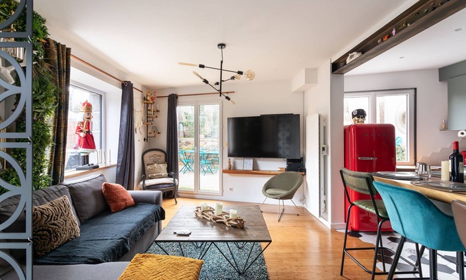 In Pléneuf-Val-André, Cocoonr Agency offers you this charming 90 m² house close to the beach, with jacuzzi, which can accommodate up to 4 travellers. Decorated and equipped in an original way, it comprises a lovely 30 m² living room, a fully equipped kitchen, two bedrooms and a bathroom (with shower and bath). Housekeeping is included in the rental price, and 4* hotel-quality linen is provided (sheets, towels, tea towels). Your bed will be made up on arrival.