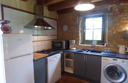 The house offers on the ground floor 1 toilet, 1 bathroom (bath with shower screen), a living / dining room (convertible corner sofa bed in comfortable 140x200 cm) and a kitchen as follows: oven , microwave oven, four gas rings, fridge / freezer, coffee machine, grill 'cakes, electric kettle, electric hand blender, dishwasher, washing machine, dryer, ...