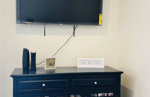 Wall to wall mirrored closets in master bedroom with velvet hangers. Netflix/Hulu and movie channels on two smart 55 Inch TVs (Bedroom and Living Room) with the highest speed internet available in San Diego for your entertainment pleasure.