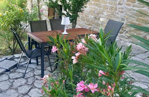 Outside there is a private area with lounge and dining area covered by a large umbrella and surrounded by colorful flowering oleanders. From the external area you can enjoy a wonderful view of the medieval city of Gubbio which is only about 5 km away. The beautiful pool is available to guests and never too crowded. The environment is quiet, dedicated to relaxation and tranquility. The property is surrounded by a large garden full of colorful and cheerful flowers, perfumes and large romantic trees that give shade and in summer help to keep the temperatures down.