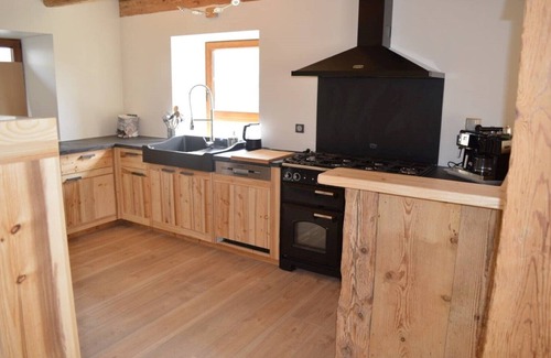 Come and discover our comfortable brand new house with cozy charm in a mountain atmosphere. It will seduce you with its large living room of 75m2 and its 5 bedrooms; 4 double bedrooms and a large dormitory with 7 single beds, perfect for family reunions or weekends with friends.