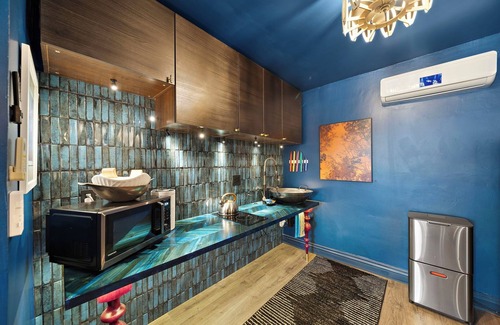 Welcome to L’atelier Bleu, your creative retreat in Montrose, Houston. Stay close to the pulse of the city, with access to vibrant nightlife, incredible food, and the eclectic arts scene. Our studio is designed for those looking for a unique vibe—a cozy yet lively space that’s perfect for unwinding or sparking inspiration. Here, art surrounds you, and if something catches your eye, you can easily make it yours.