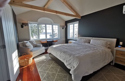 Located less than an hour distance from Montreal and 15 minutes from Bromont Ski Resort + Waterpark, this luxurious residence on the Lake will charm you.